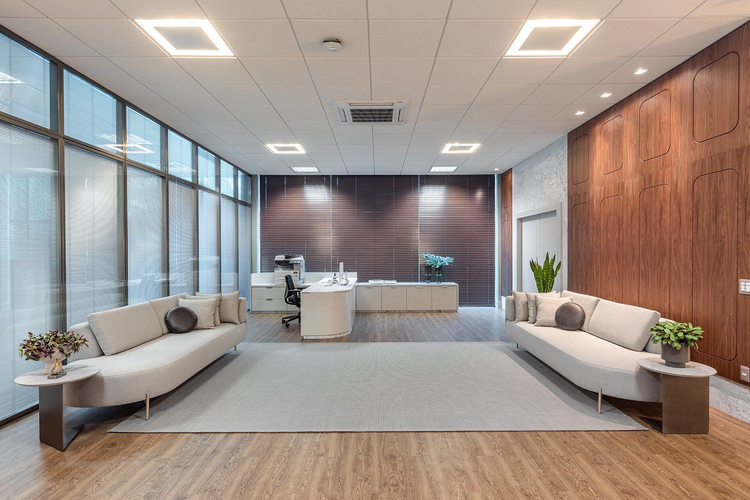 Hall da sala da presidência, por Heidy Stoltenberg, com sofá Asa