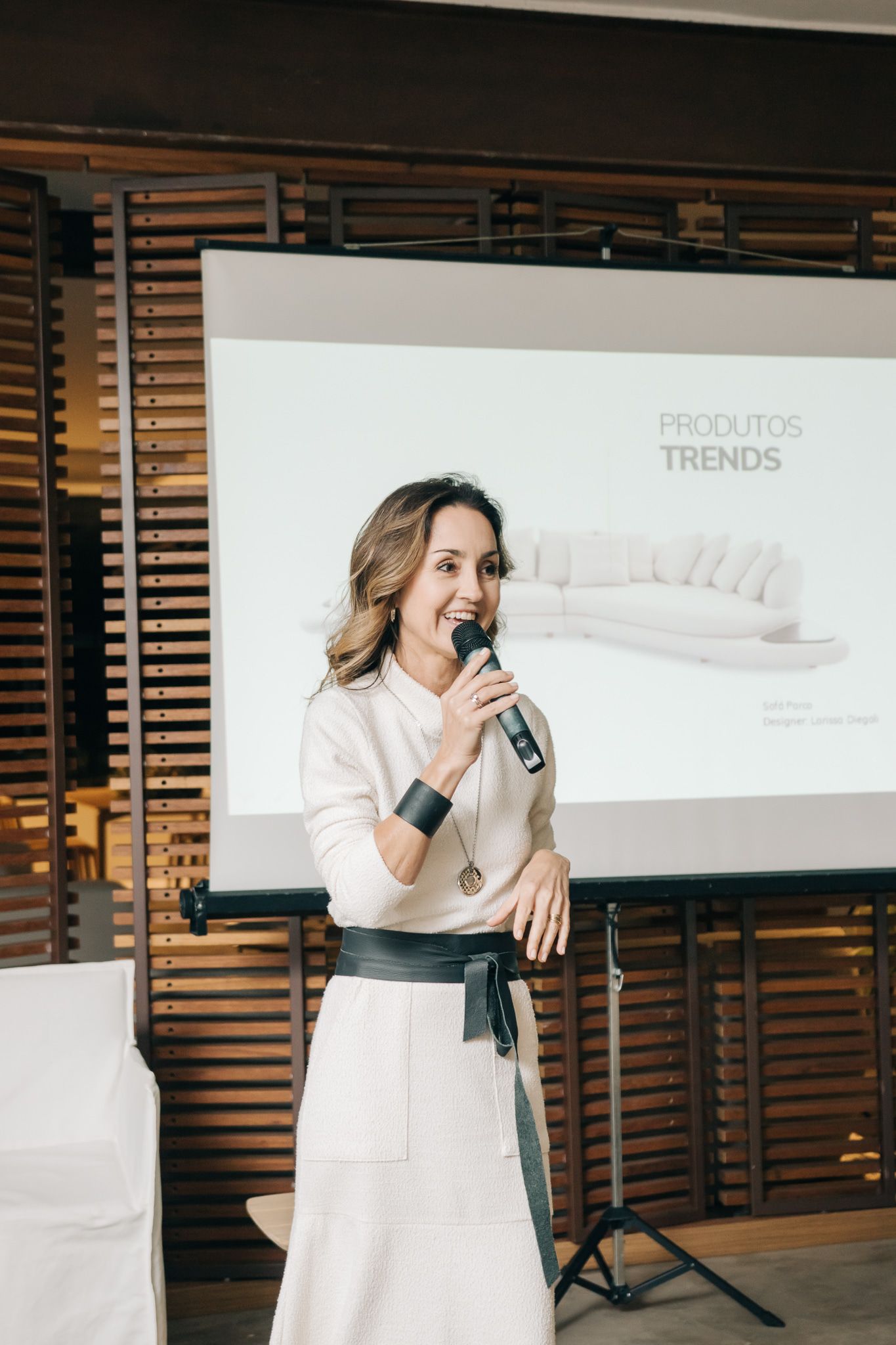 arquiteta e designer há 25 anos, refletiu sobre a vocação e o propósito do design, enfatizando o poder do mobiliário em criar e transformar relações interpessoais.