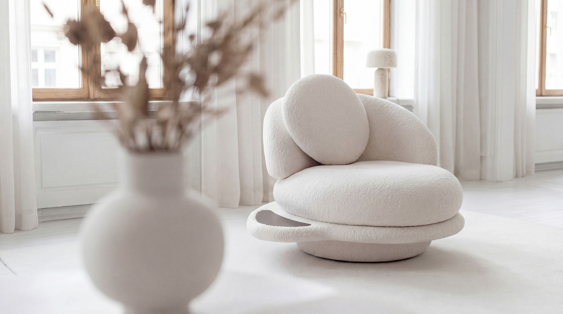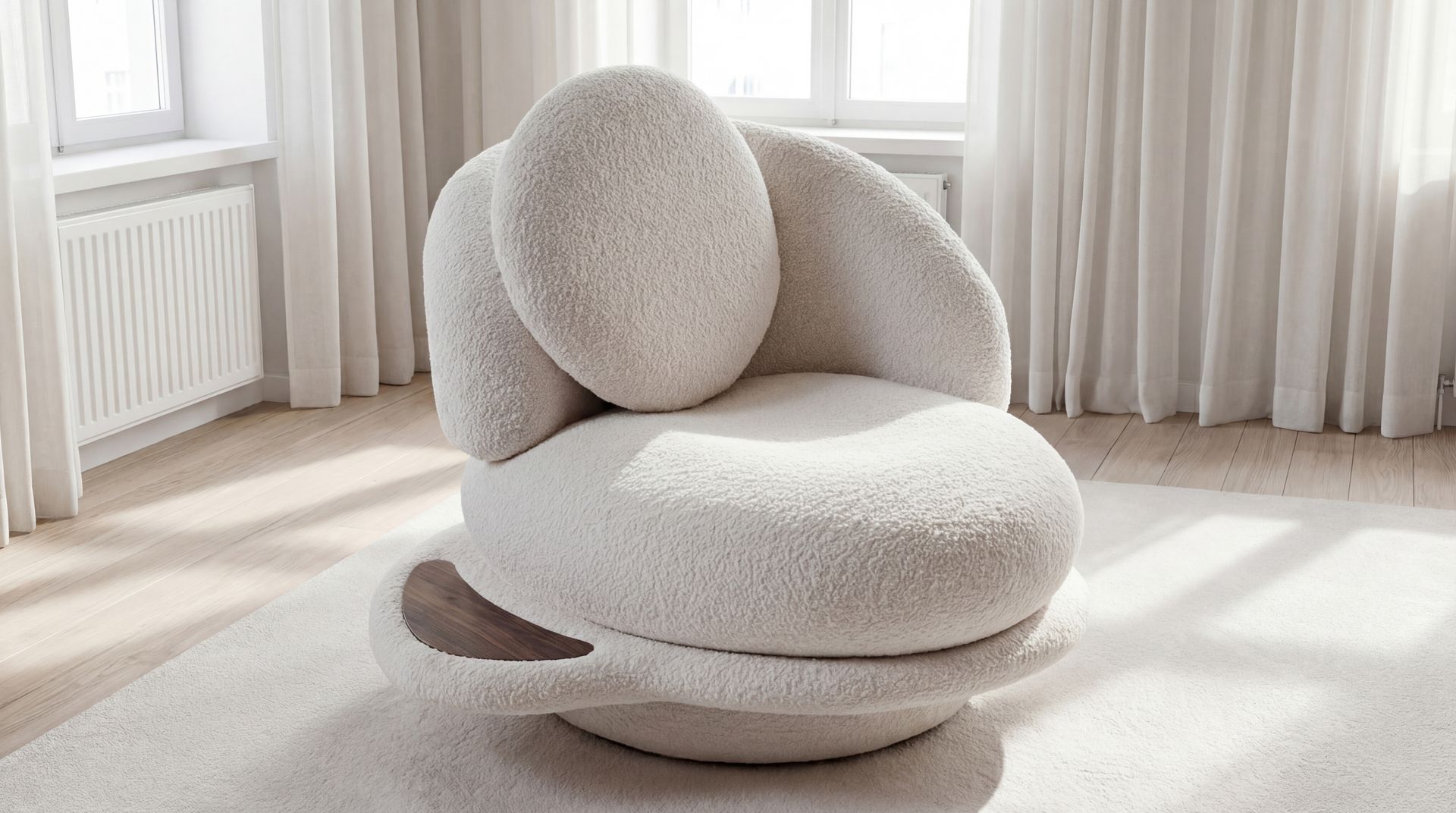 A poltrona Gel celebra a criatividade do design moveleiro brasileiro. Com assinatura de Larissa Diegoli, a peça foi originada a partir da observação de como uma gota de gel se espalha de forma orgânica quando cai e toca a superfície. Uma poltrona para sentar, para se aconchegar e para impressionar; destaque para a base giratória que propicia maior interação e integração dos ambientes.