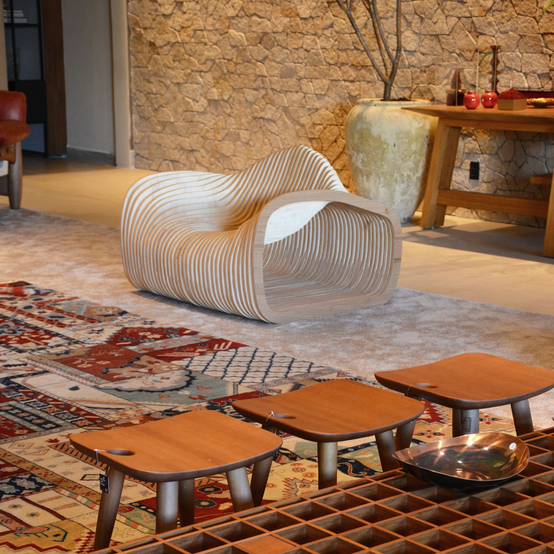 Inspirada nas curvas da pista de Indianápolis, a poltrona Indy foi feita para desacelerar. Unindo arte e design, arcos de madeira se conectam em uma graciosa e impecável dança de linhas orgânicas, comprovando que as curvas são mesmo uma tendência que veio para ficar. De diferentes ângulos, a peça causa um impacto visual extraordinário e surpreende pelo conforto da acomodação.