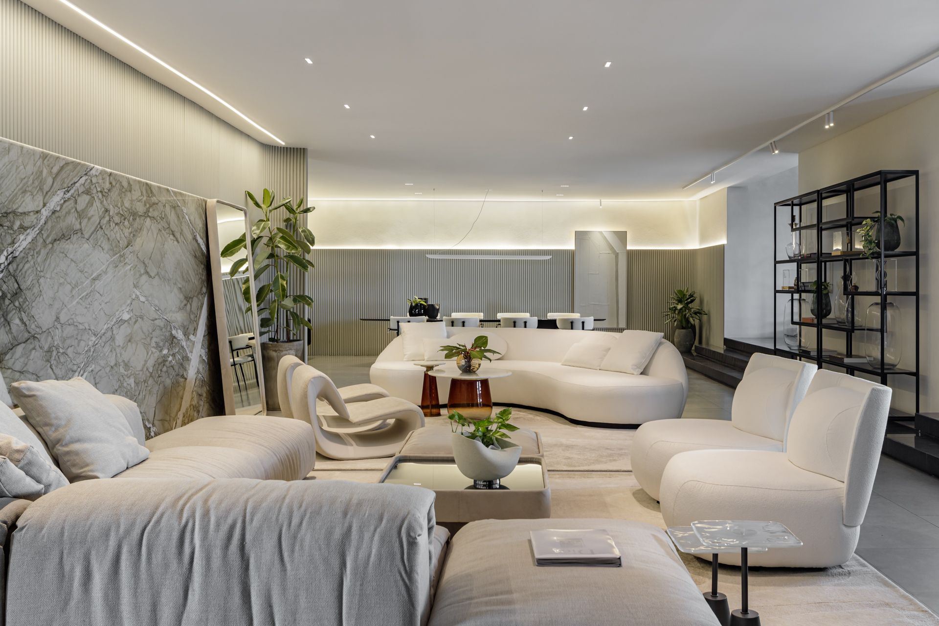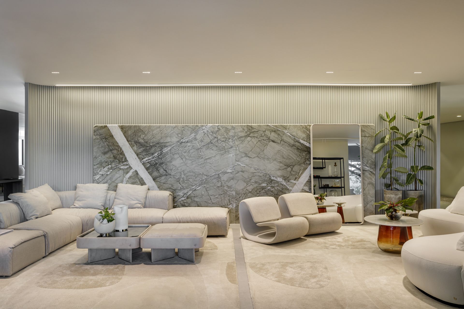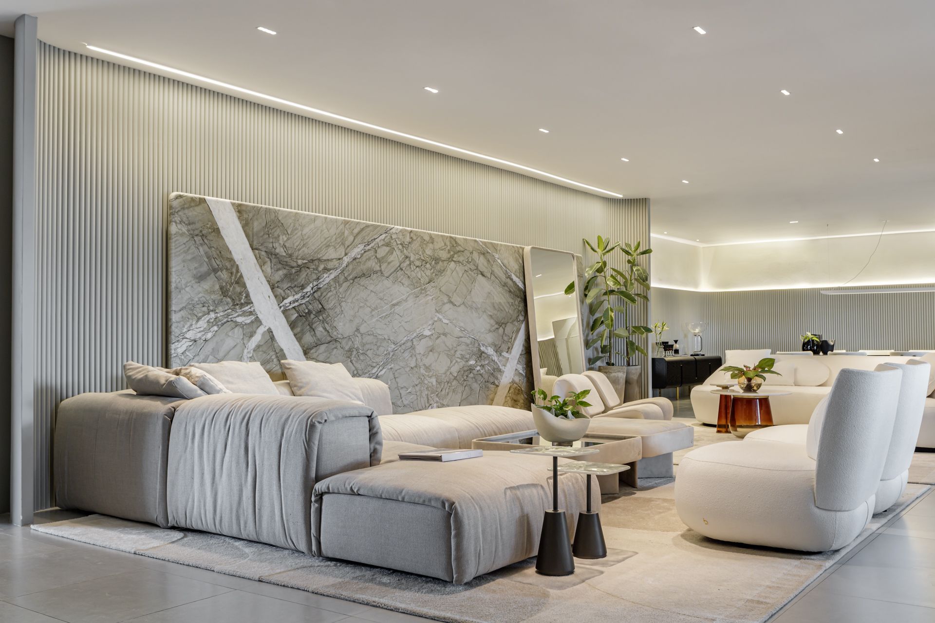 Os convidados puderam apreciar de perto os sofás, mesas de centro, puffs e espelhos, que foram dispostos em diferentes ambientes da loja, criando cenários inspiradores.