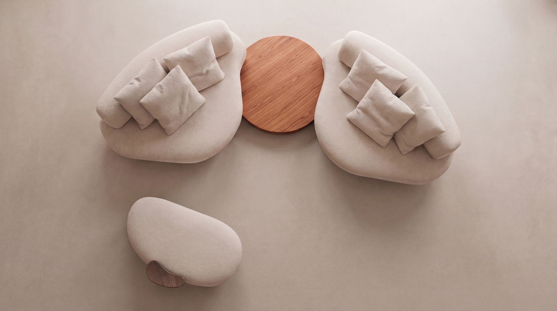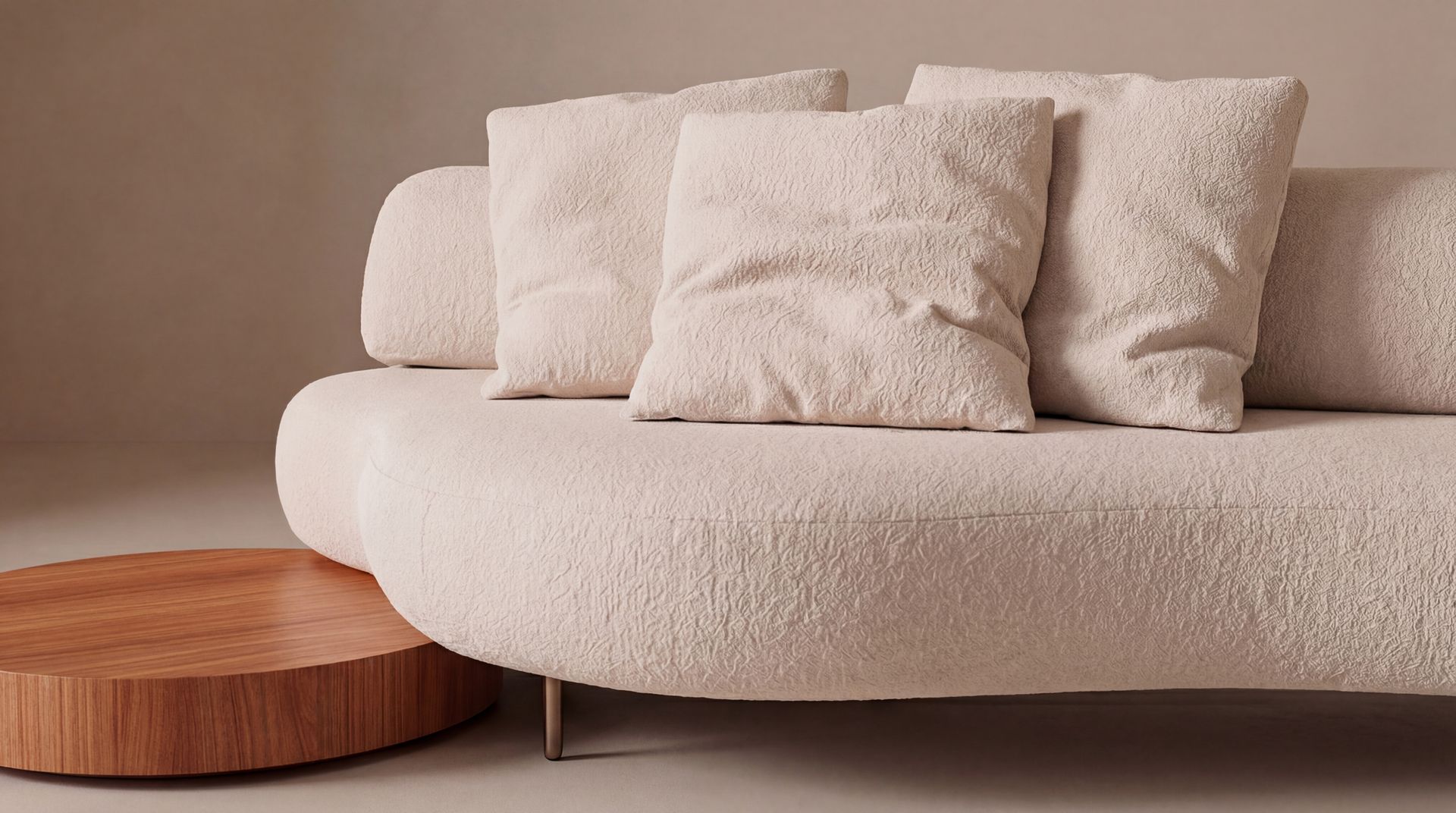 Visualmente, nosso Montaggio apresenta um encaixe preciso, porém afetuoso e curvilíneo. A organicidade dos módulos forma um estofado elíptico, que convida a se acomodar. Bastante funcionais, os assentos podem ser utilizados individualmente como chaises; o sofá Montaggio recebe ainda mesas redondas que funcionam como conexões e um encosto moldável e solto que pode dar múltiplas funções à peça.