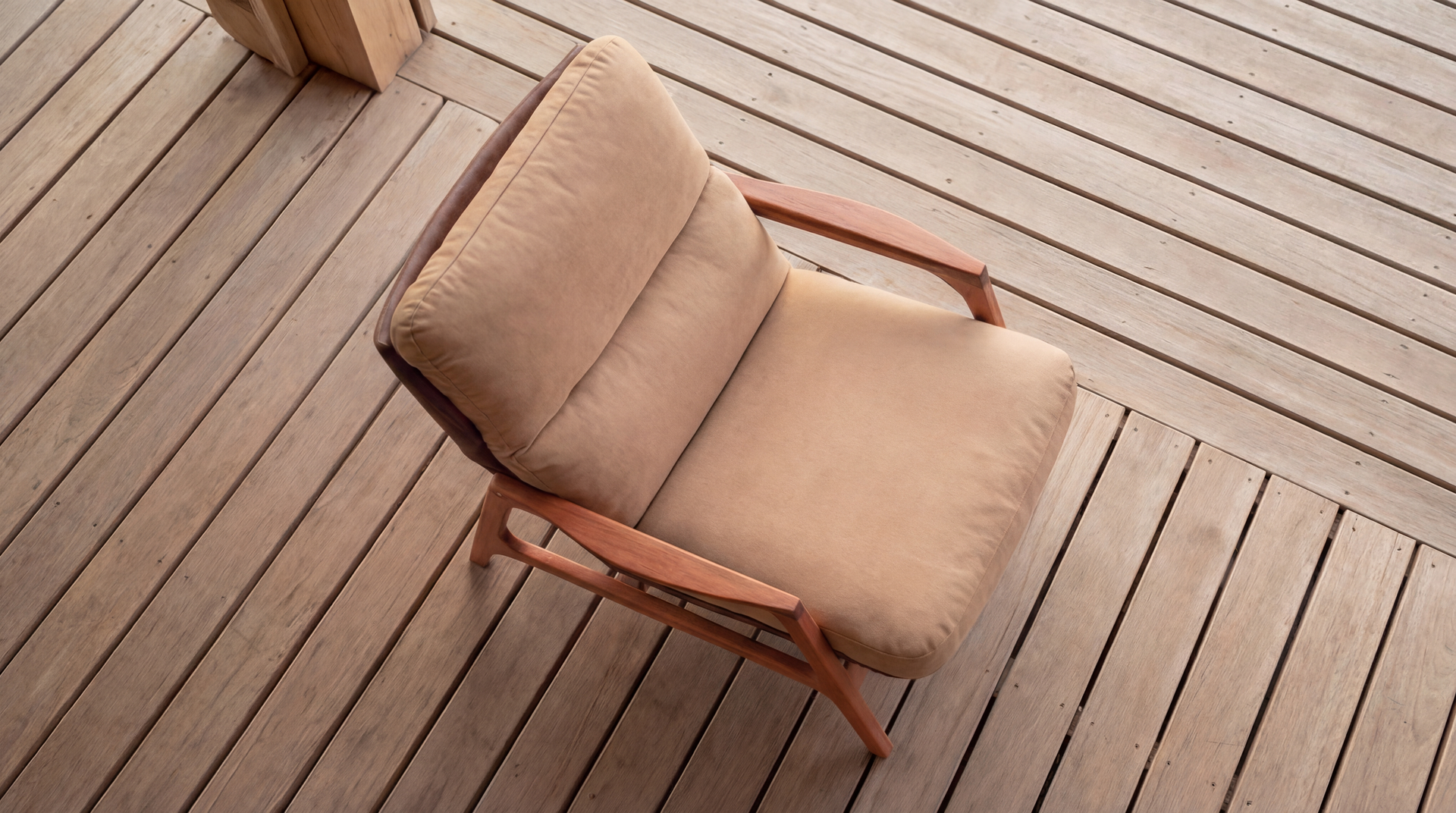 Pater significa papai em latim e a concepção da peça representa um momento pessoal do designer Everton Souza com a paternidade. Curinga e totalmente atemporal – é impossível definir, à primeira vista, se a poltrona é atual ou dos anos 70 - ela apresenta uma releitura da tradicional poltrona do papai e possui encosto e assento com plumas e espumas de diferentes densidades, além de um detalhe exclusivo: parafusos originais de latão usinados especialmente para a poltrona, bem como o puff agregado para maior conforto dos pés.
