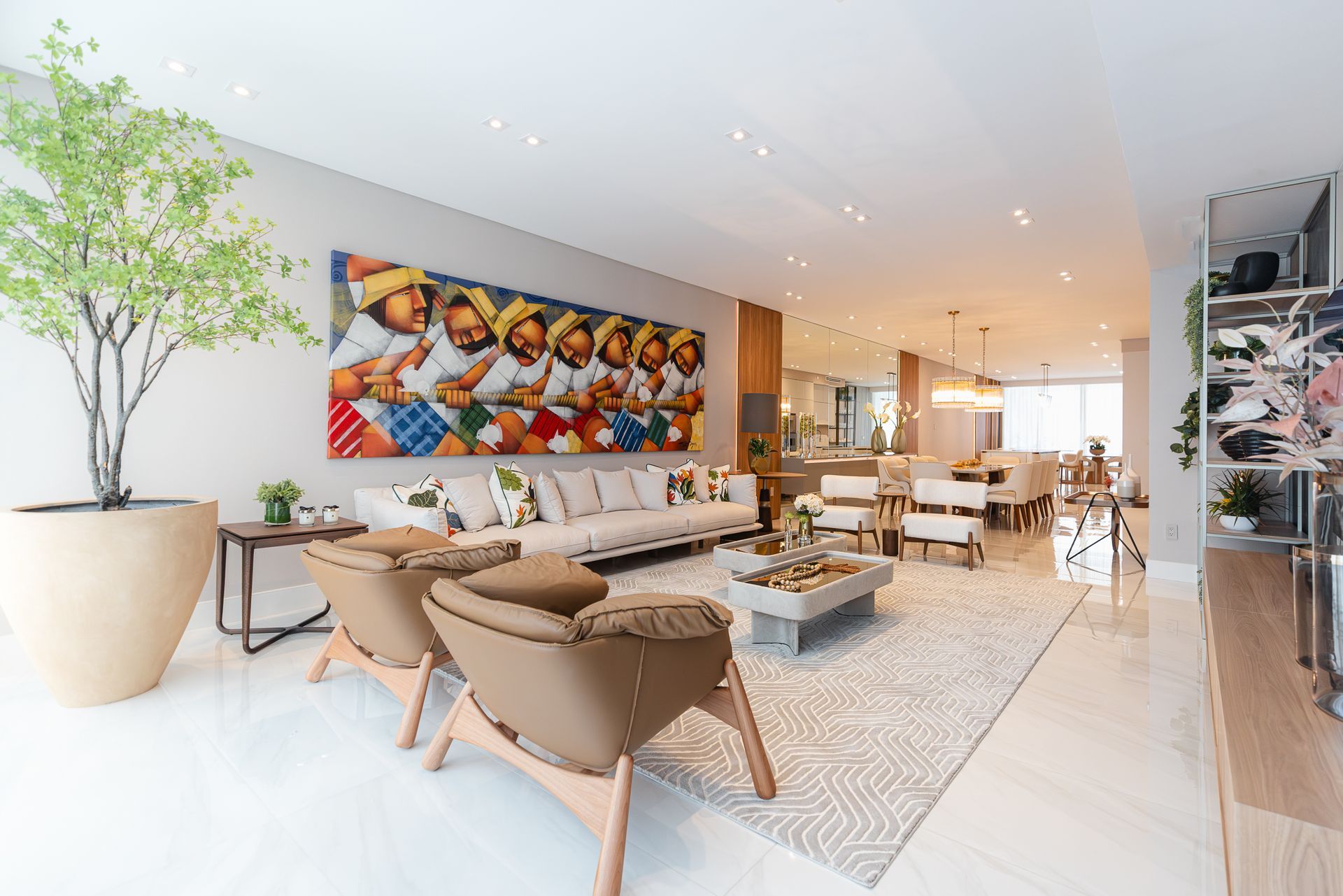 traduz a essência de um lar acolhedor, elegante e cheio de personalidade. O ambiente reflete o equilíbrio perfeito entre design contemporâneo e conforto atemporal.